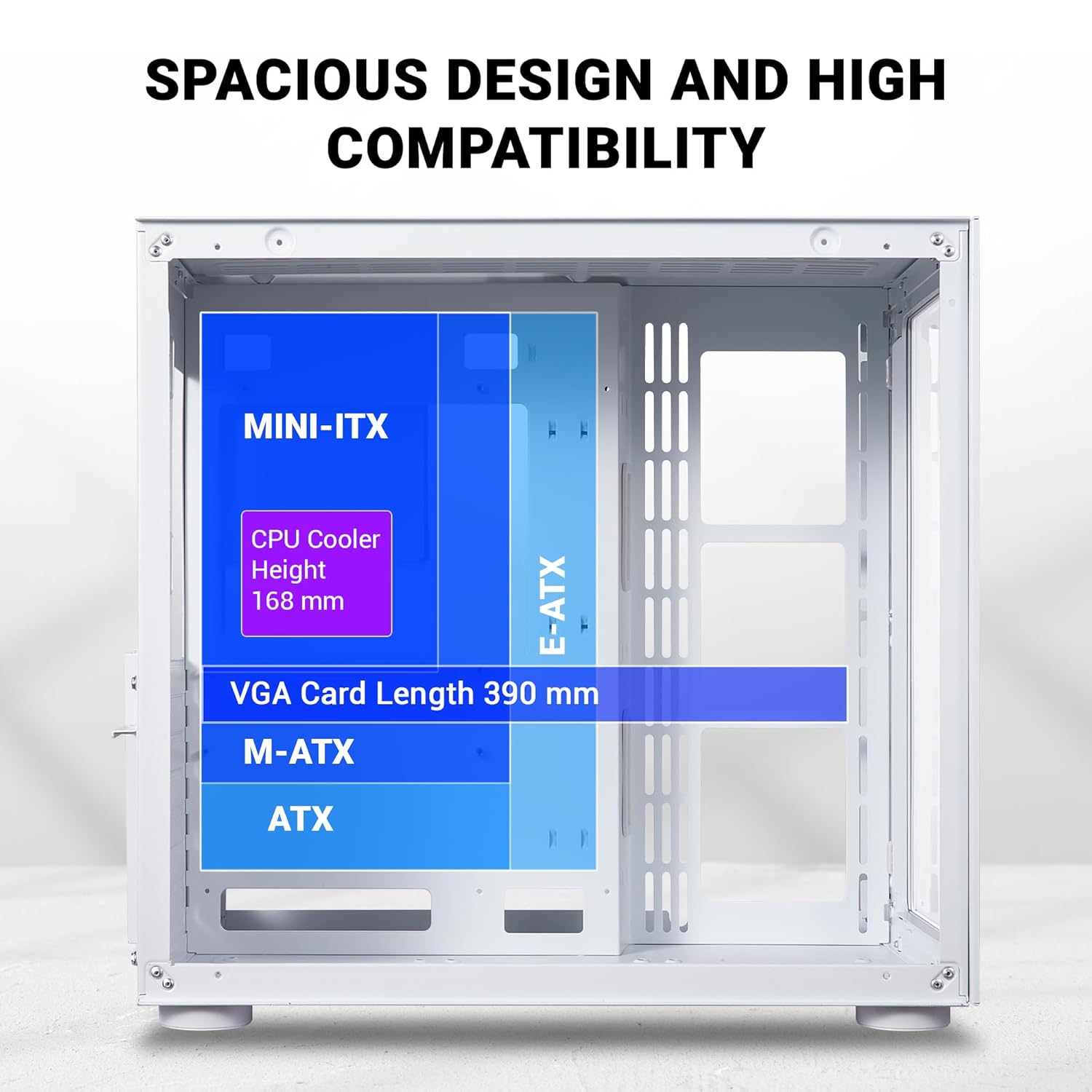 Ant Esports Crystal Mini-Tower Computer Case/Gaming Cabinet – White | Support E-ATX, ATX, Micro-ATX, Mini-ITX | Pre-Installed 3 Side Fans and 1 Rear Fan