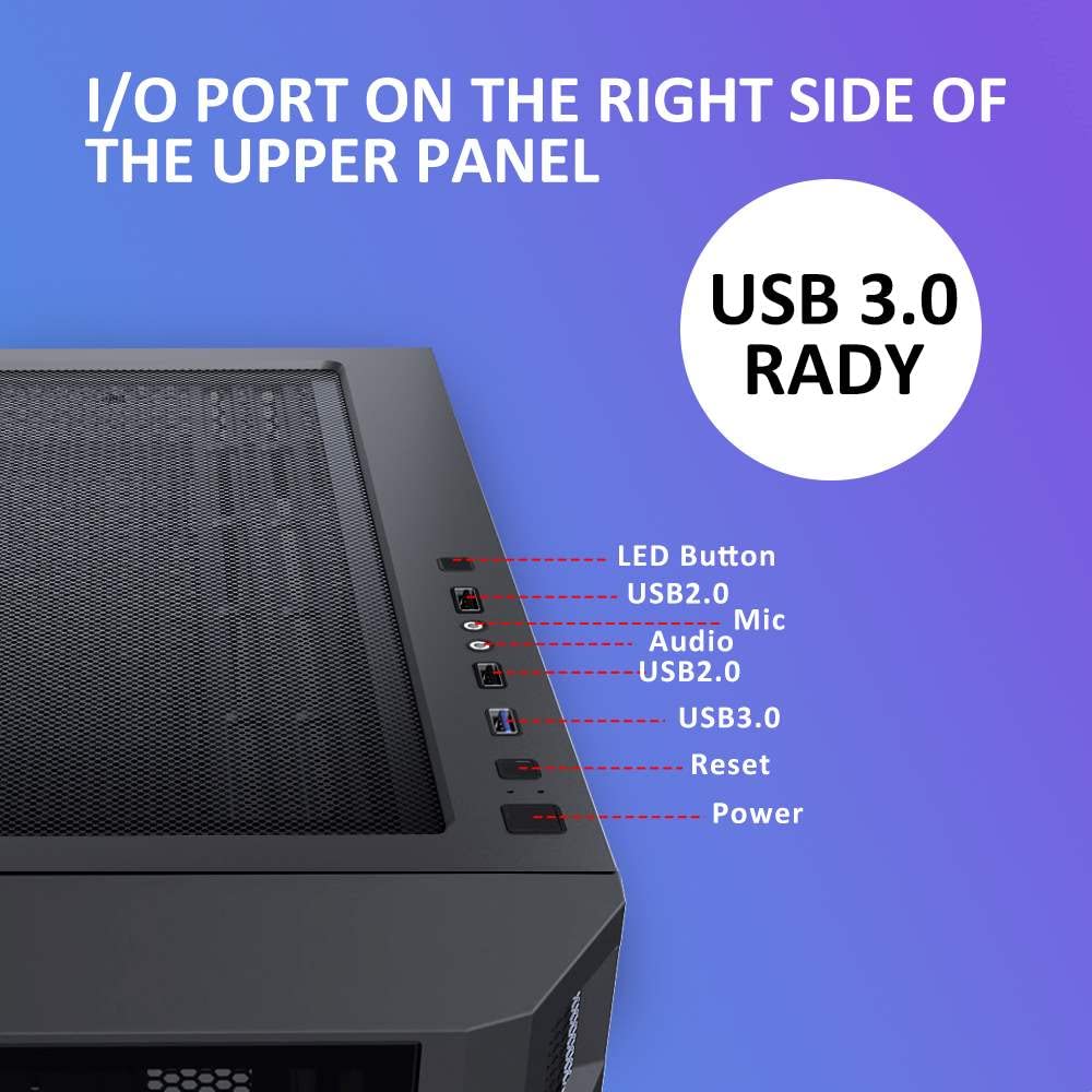 I/O Panel – 2 x USB 2.0, 1 x USB 3.0, 1 x Audio In, 1 x Mic