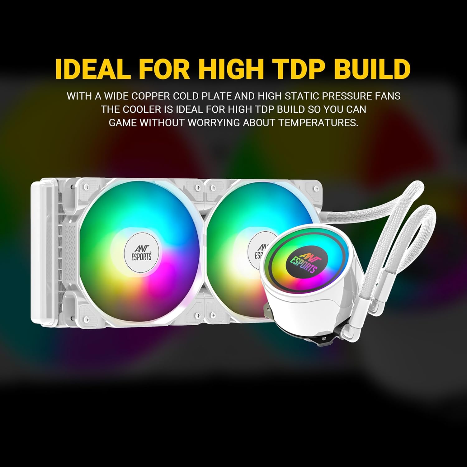 Ant Esports ICE-240 240mm Addressable RGB 2600 RPM AIO I CPU Liquid Cooler – White I Support Intel – LGA115X/1200/1700/1366/2011/2066 & AMD – FM1/FM2/AM2//AM2+/AM3/AM3+/AM4/AM5