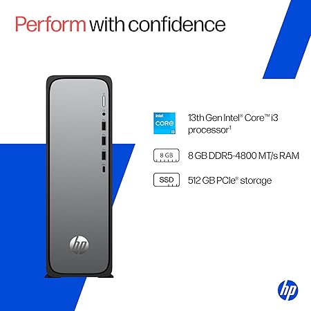 - Processor: Intel Core i3-14100 (up to 4.5 GHz with Intel Turbo Boost Technology, 12 MB L3 cache, 4 cores, 8 threads)| Memory: 8 GB DDR5-4800 MT/s (1 x 8 GB) |Storage:512 GB PCIe NVMe M.2 SSD