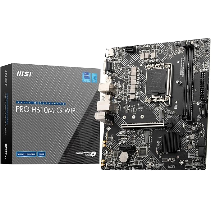 MSI PRO H610M-G WiFi Motherboard – Micro-ATX, Supports 12th/13th/14th Gen Intel Core Processors, LGA 1700 Socket, DDR5 Memory Boost 5600MHz/MAX, PCIe 4, 1G LAN, M.2 Slots, USB 3.2, Wi-Fi 6E